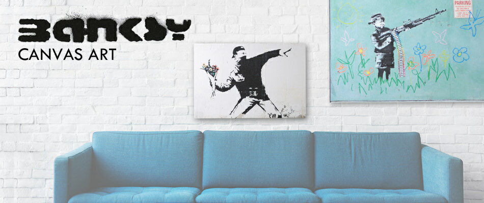 BANKSY CANVAS ART キャンバスアートファブリックパネル "Boy With Crayon Machinegun " 60cm × 40cm バンクシー クレヨン マシンガン【送料無料】 ギフト